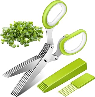 Neben dem Kräutermesser gibt es auch spezielle Kräuterscheren, oft mit mehreren Klingen für schnelles Zerkleinern. Beide Werkzeuge haben ihre Berechtigung in der Küche: