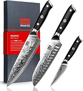 SHAN ZU Damastmesser-Set, 3-teilig japanisches …