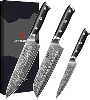 KEEMAKE Damastmesser Set 3 teilig – Küchenmess…