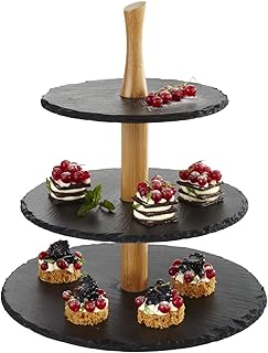 Die Kombination aus mehreren Ebenen, wie sie für Etageren typisch ist, ermöglicht es, verschiedene Speisen übersichtlich und platzsparend zu präsentieren. Besonders bei begrenztem Tischraum können Etageren aus Schiefer ihre Stärken ausspielen und für eine optisch ansprechende Präsentation sorgen.