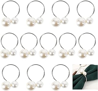 12 Stück Serviettenringe Silber Perlen Serviet…