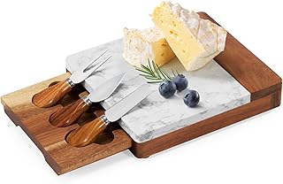 Viele hochwertige Käseplatte Servierbretter werden heute bereits mit integrierten Fächern für die passenden Messer oder sogar mit einem kompletten Messerset angeboten. Diese Sets sind nicht nur praktisch, sondern auch optisch ein Gewinn für jede Käseplatte.