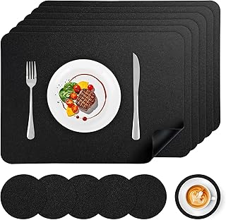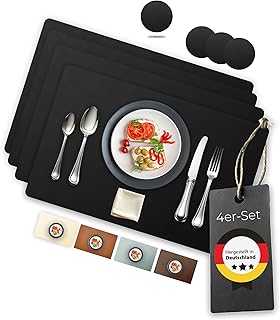 Leder und Kunstleder bringen eine edle Note auf den Tisch. Sie sind besonders langlebig, leicht abwischbar und entwickeln mit der Zeit eine wunderschöne Patina. Leder-Tischsets in Cognac-Tönen oder schlichtem Schwarz verleihen selbst einfachen Mahlzeiten einen Hauch von Luxus.
