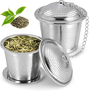 Infusionssiebe: Diese länglichen Siebe mit Verschlussmechanismus sind perfekt für größere Kräuter und können direkt in Tassen oder kleine Töpfe gehängt werden.