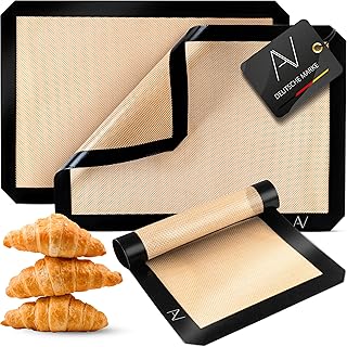Silikonbackmatten sind besonders beliebt wegen ihrer Flexibilität und Hitzebeständigkeit. Sie bestehen aus lebensmittelechtem Silikon und können in der Regel Temperaturen von -40°C bis zu 230°C standhalten. Diese Matten sind nicht nur für Backwaren geeignet, sondern auch für die Zubereitung von Süßigkeiten wie Pralinen oder zum Ausrollen von Teig.
