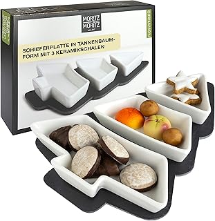 Holz und Schiefer bieten eine warme, natürliche Basis für Ihre weihnachtlichen Köstlichkeiten. Servierplatten aus Holz mit weihnachtlichen Gravuren oder in Form von Sternen und Tannenbäumen bringen rustikalen Charme auf den Tisch.