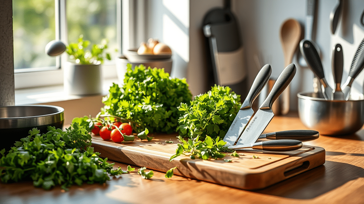 Kräutermesser für kulinarische Meisterwerke In der Welt der Küchenmesser gibt es für nahezu jede Aufgabe das passende Werkzeug. Während viele Hobbyköche die Grundausstattung mit Kochmesser, Brotmesser und Schälmesser besitzen, bleibt ein unverzichtbares Spezialwerkzeug oft unbeachtet: das Kräutermesser. Dieses kompakte Präzisionsinstrument ist der Schlüssel zu aromatischen Gerichten und kann Ihre Kochkünste auf ein neues Niveau heben….